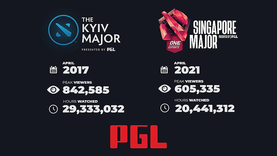 Singapore Major стал вторым по общему времени просмотра трансляций – зрители потратили больше 20 млн часов на просмотр матчей последнего мейджора. Пиковый показатель просмотра составил 605 тысяч зрителей, гранд-финал приблизился к этому показателю – 597 тысяч одновременно смотрели за решающим матчем.