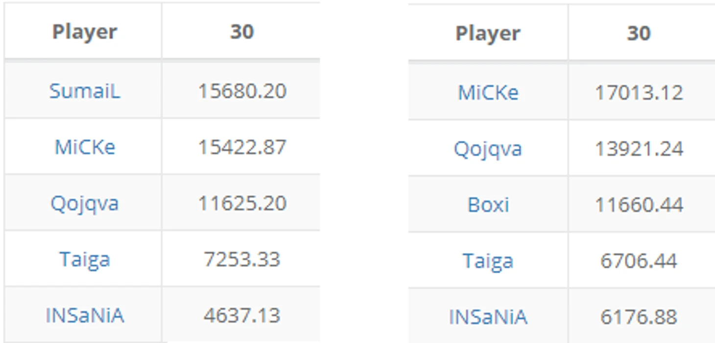 При этом показатели фарма Койквы, перешедшего на оффлейн, и временно находящегося в инактиве Самуэля «Boxi» Свана остались приблизительно на том же уровне.