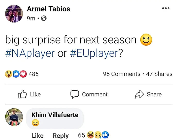 Оригинальный пост появился в Фейсбуке игрока, но позже был удален. Его тиммейт Ким «Gabbi» Виллафуерте оставил к посту грустный смайлик.