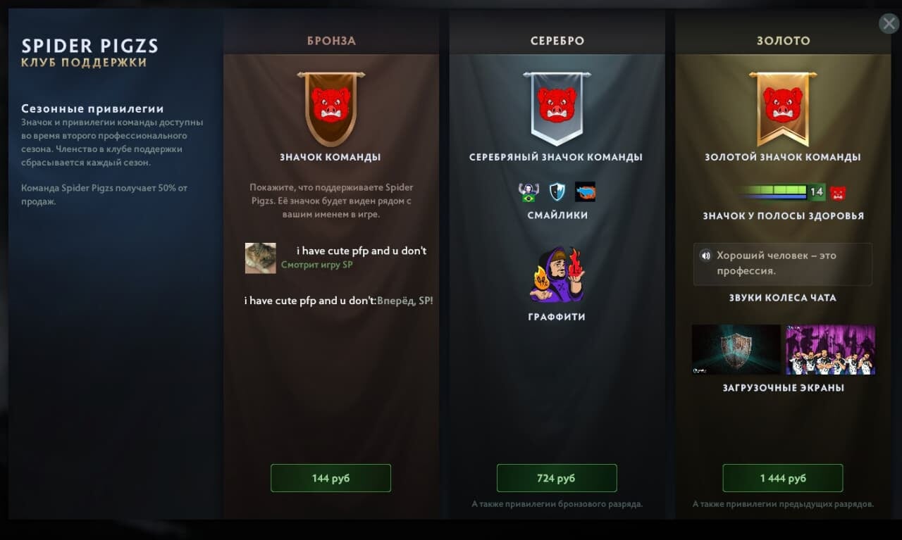 В золотом комплекте команды Spider Pigzs присутствует голосовая фраза «Хороший человек – профессия», озвученная Николой «LeBronDota» Поповичем.