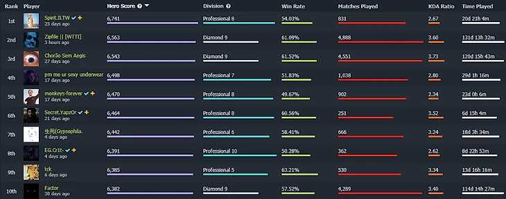 Общее игровое время на герое у ILTW составило 20 дней и 21 час.