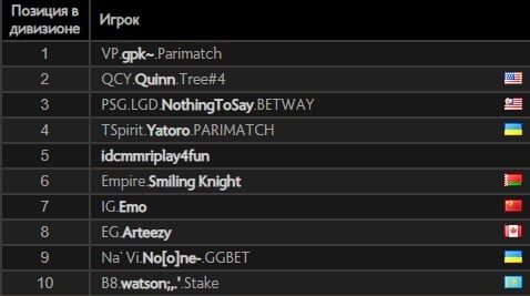 В топ-10 из СНГ вошли Илья «Yatoro» Мулярчук, Егор «Nightfall» Григоренко, Алексей «Smiling Knight» Свиридов, Владимир «No[o]ne» Миненко и керри B8 Алимжан «watson» Исламбеков.