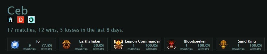 Ceb тренировал Виспа 3-й позиции в матчмейкинге. Винрейт – 77,8% за 9 игр