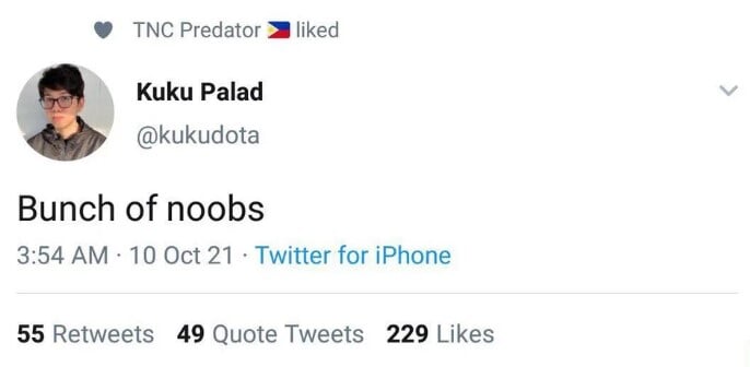 «Кучка нубов», – коротко написал Палад в твиттере после победы на Undying. Позже филиппинец заявил, что это была шутка и удалил запись.