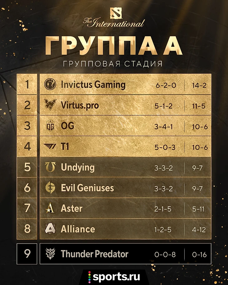 Вышли в верхнюю сетку: Virtus.pro, Spirit, Invictus Gaming, OG, T1, PSG.LGD, Secret, Vici.