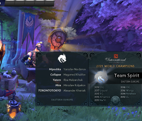 Разработчики добавили команду Spirit в Зал славы Dota 2. Также название Spirit появилось на Аегисе Чемпионов, который стоит рядом с фонтанами сил Света и Тьмы в Доте.