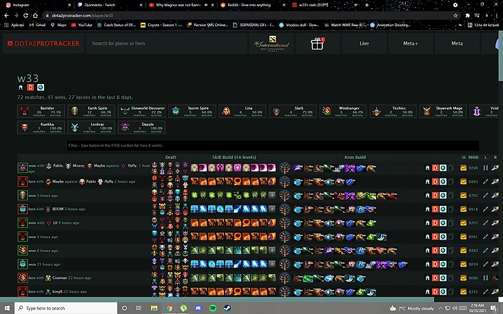 Альви «w33» Омар сыграл 77 игр в матчмейкинге за 8 дней.