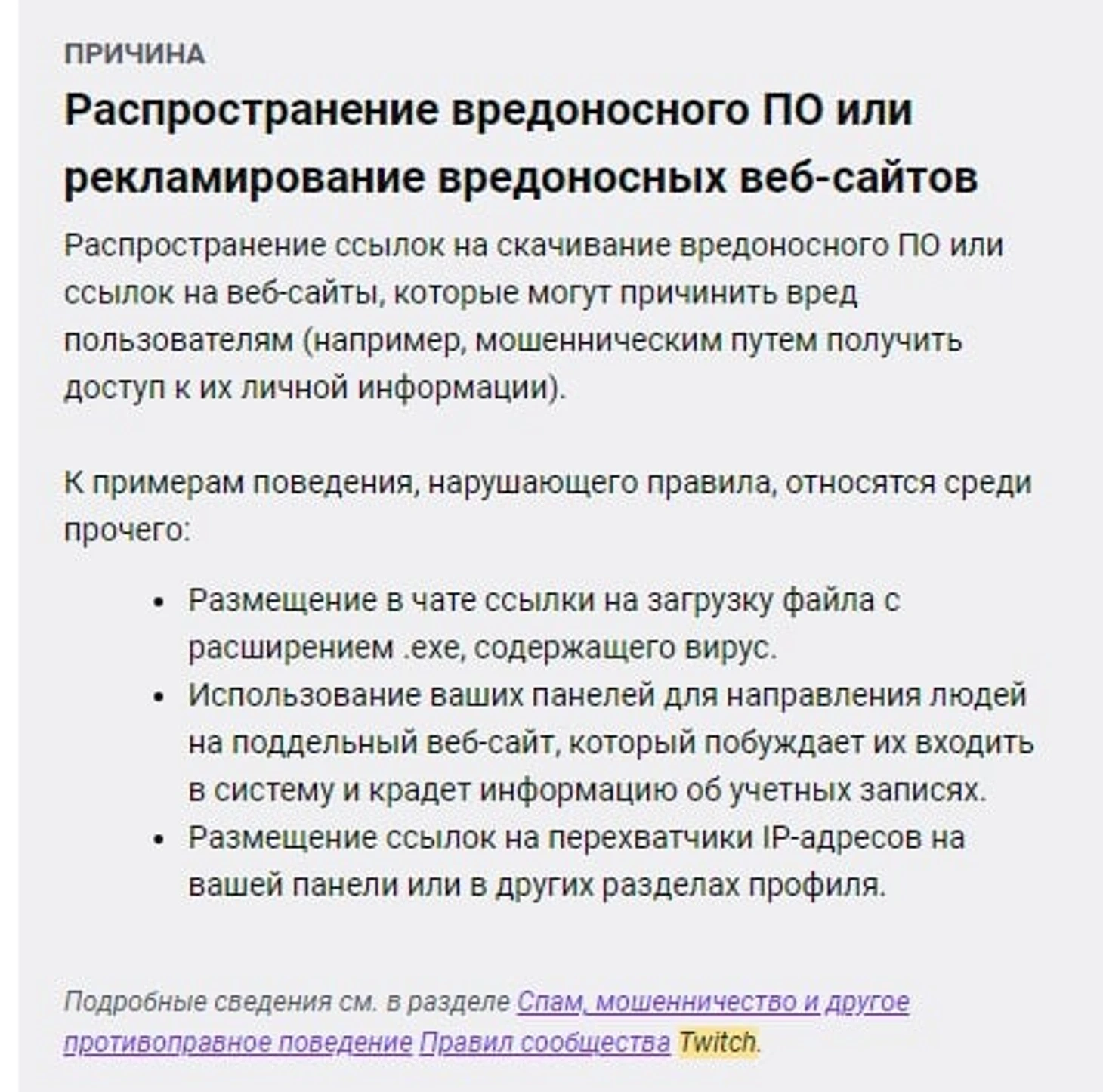 Причиной бана стало распространение вредоносного программного обеспечения. Пользователи предполагают, что блокировка могла случиться по ошибке. В последнее время на Твиче появляются фейковые стримы игроков Team Spirit.