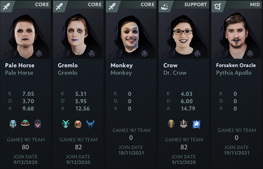Игроки Arkosh Gaming загрузили фото в образе готов для DPC-профилей в Доте