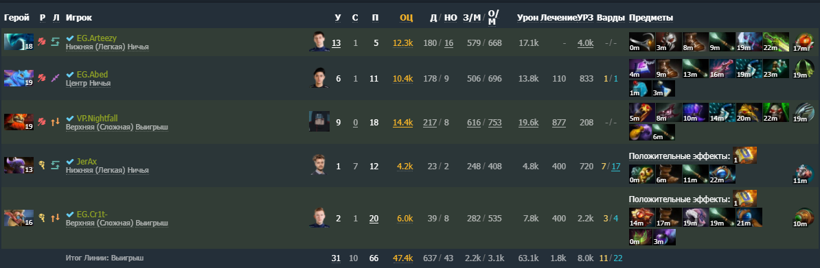 Оффлейнер Evil Geniuses Егор «Nightfall» Григоренко стал лидером по урону в дебютном матче за американский клуб.