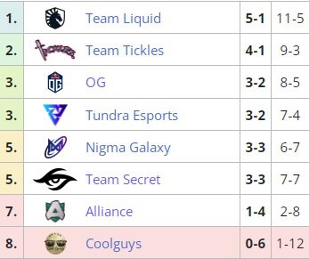 Coolguys (0-6) потеряли шансы на сохранение прописки в верхнем дивизионе Европы. Alliance со статистикой 1-4 может остаться в верхнем дивизионе, только если выполнятся следующие условия: