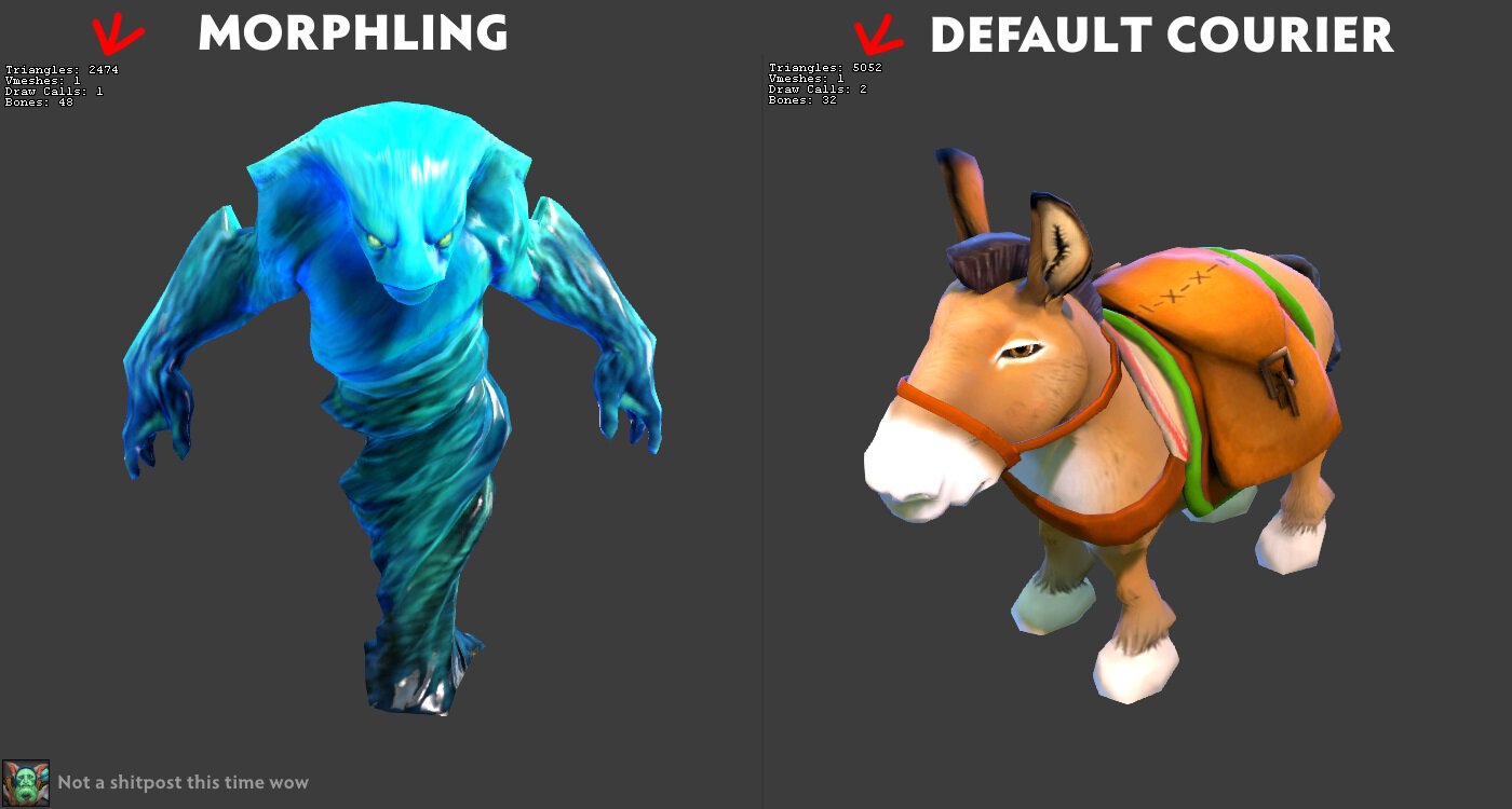 У стандартного курьера Доты в 2 раза больше полигонов, чем у Морфлинга.