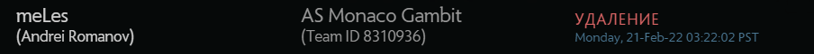 Оффлейнера AS Monaco Gambit Андрея «meLes» Романова удалили из состава на сайте регистрации команд.