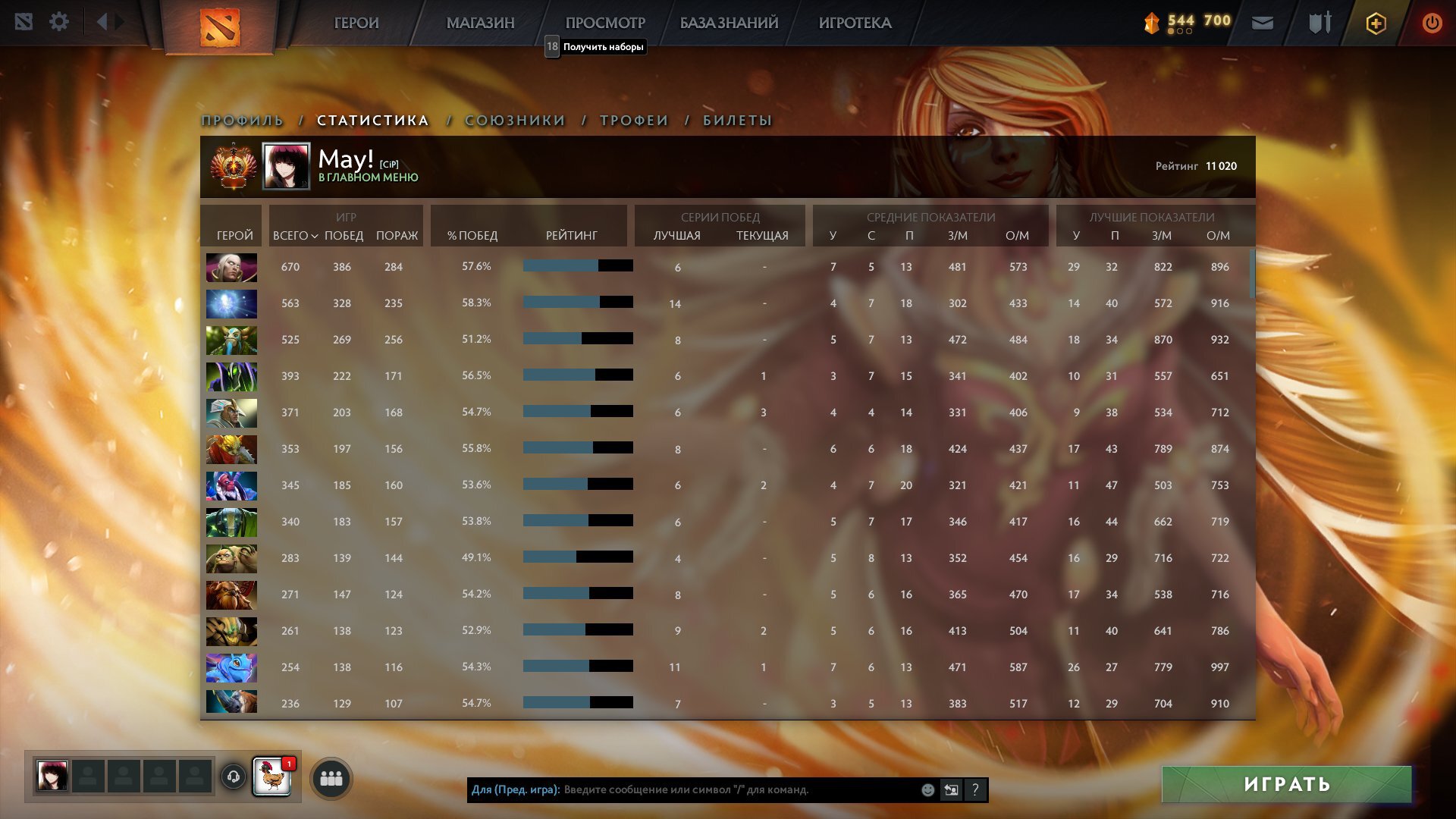 Об этом SoNNeikO сообщил в своем твиттере. За последние 8 дней Акбар сыграл 50 матчей, в 31 он победил.