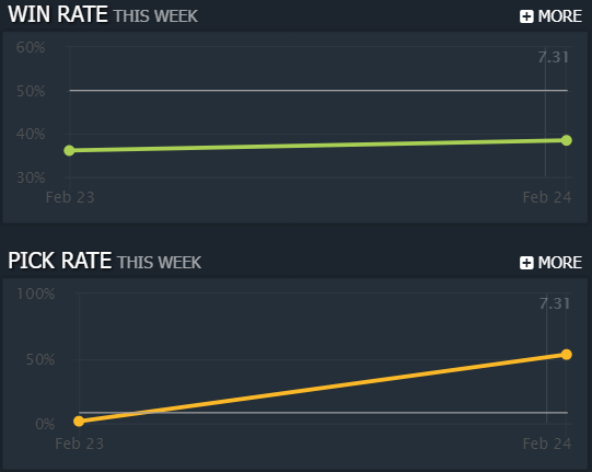 Согласно сайту Dotabuff, на данный момент винрейт Primal Beast составляет 38%. При этом его берут в 53% от всех игр. В 72,5% на новом герое играют в оффлейне.