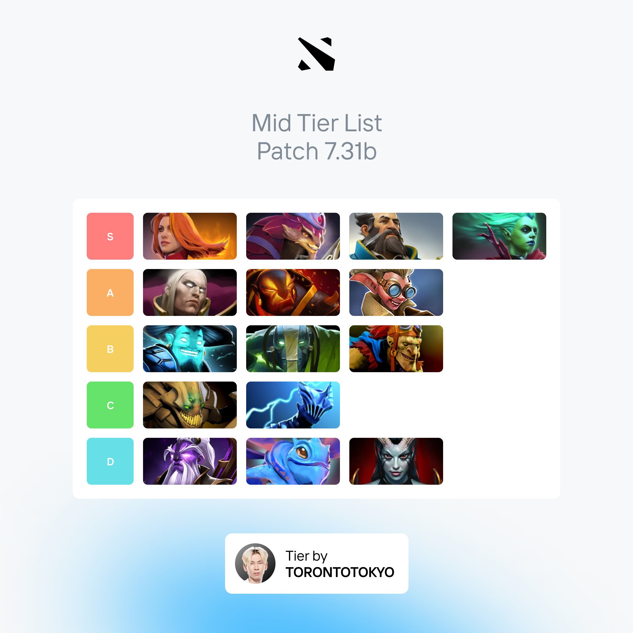 В S-тир Хертек поставил Лину, Пангольера, Кункку и Баншу. Далее в список попали Invoker, Ember Spirit и Snapfire (А-тир) и Storm Spirit, Earth Spirit и Batrider (B-тир).