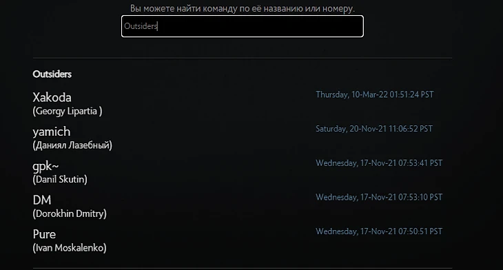 На сайте регистрации команд игроки Virtus.pro заявлены под тегом Outsiders, который используют игроки составов по CS:GO и Rainbow Six Siege.