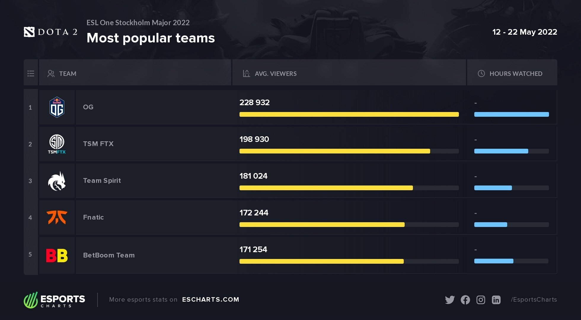 OG стала самой популярной командой среди зрителей мейджора в Стокгольме. Spirit – 3-я