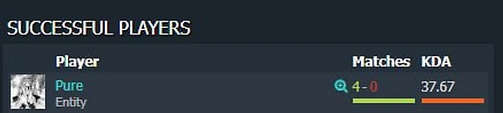 KDA Пьюра за 4 карты в Entity – 37,67. Винрейт – 100% .