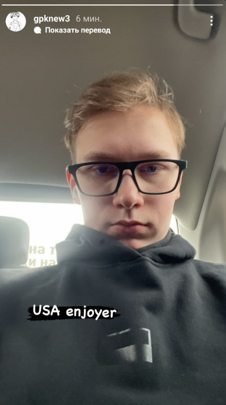 «USA Enjoyer», – подписал селфи в машине Данил «Gpk» Скутин. На заднем стекле машины используется кириллица.