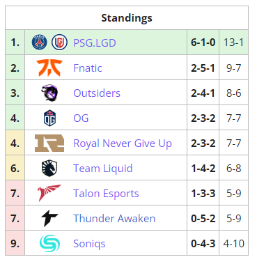 Группа А: Fnatic, OG, Outsiders (VP), PSG.LGD, Royal Never Give Up, Soniqs, Talon, Liquid, Thunder Awaken.