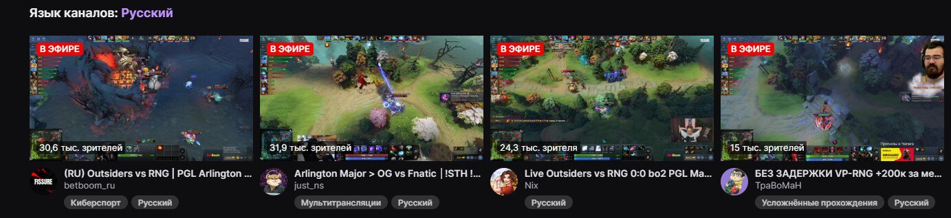 Стоит отметить, что все канала стримят матч Outsiders (VP) – Royal Never Give Up.