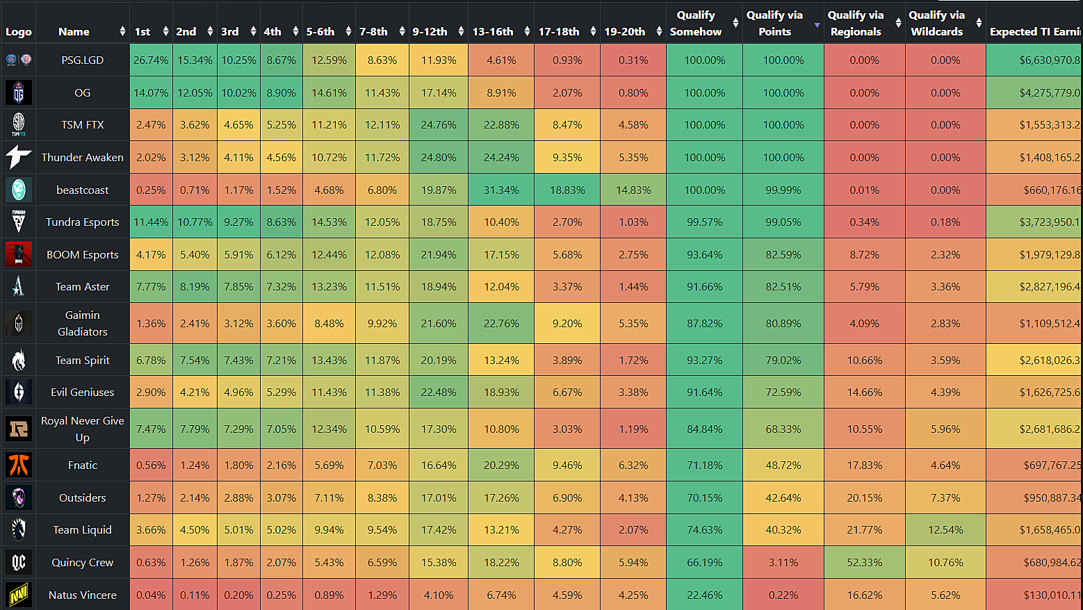 Noxville обновил таблицу с шансами команд на прямую квалификацию на TI.