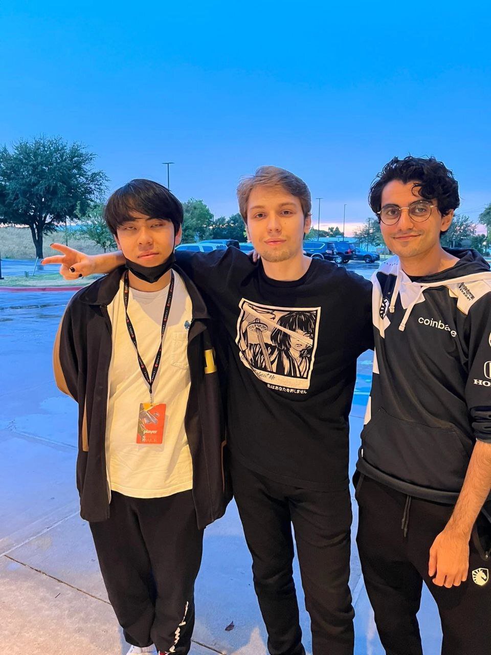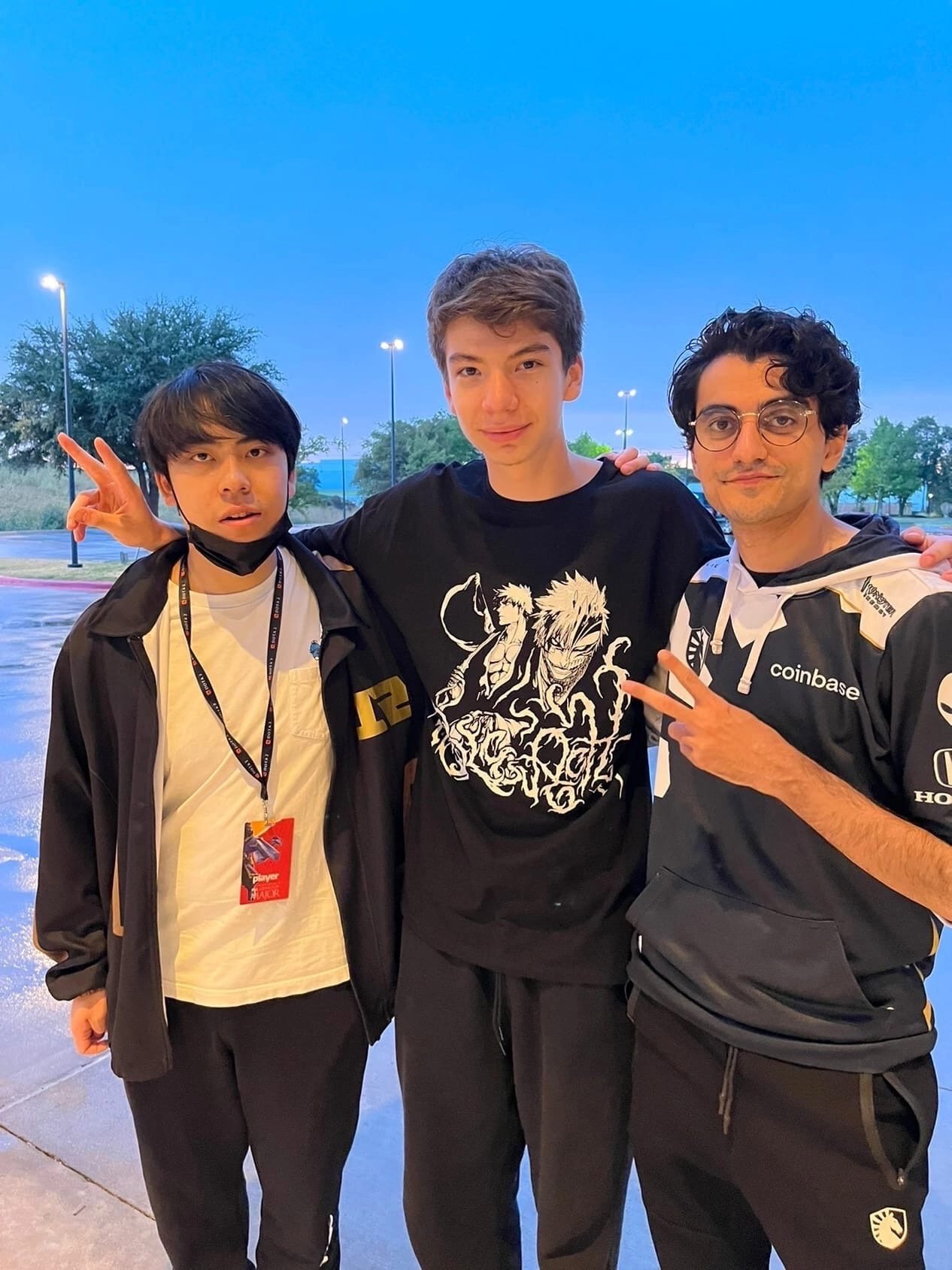 Даниял «yamich» Лазебный и Егор «Xakoda» Липартия после матча с RNG сфотографировались с Анатаном «ana» Фамом и Айденом «iNsania» Саркои.