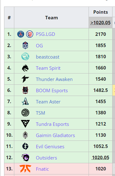 Российский клуб с учетом топ-8 на PGL Arlington Major занял в таблице 12-е место с 1020,05 очками и прошел благодаря этому на The International. Outsiders обогнали Fnatic на 0,05 очка.