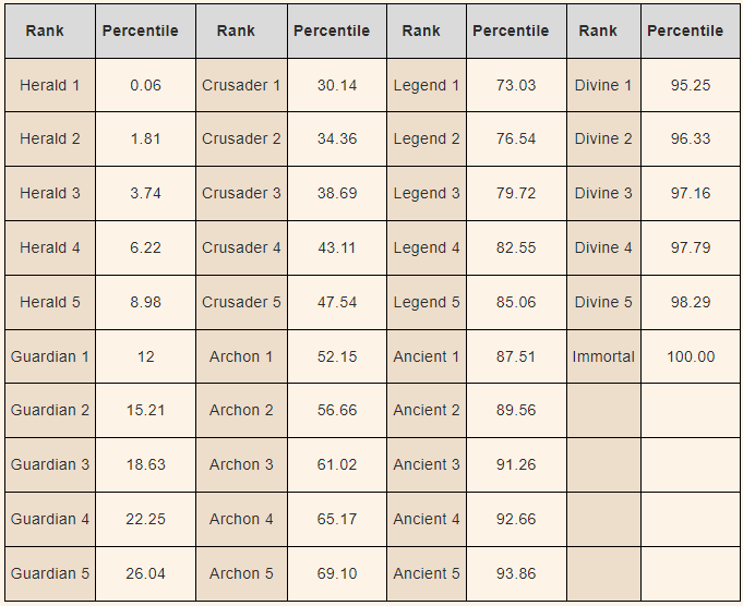 Только 13% игроков в Доту имеют ранг выше «Властелина 1», у 0,06% ранг «Рекрут 1», самый частый – «Герой 1»