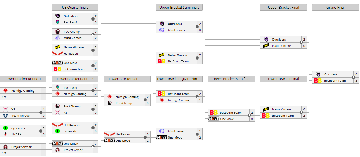 Участники квалификаций на TI11 в ВЕ: Outsiders (VP), BetBoom, NAVI, Mind Games, Puckchamp, HellRaisers, One Move, Pari Parni, Nemiga, Project Armor, Cybercats, Unique, X3, Hydra.