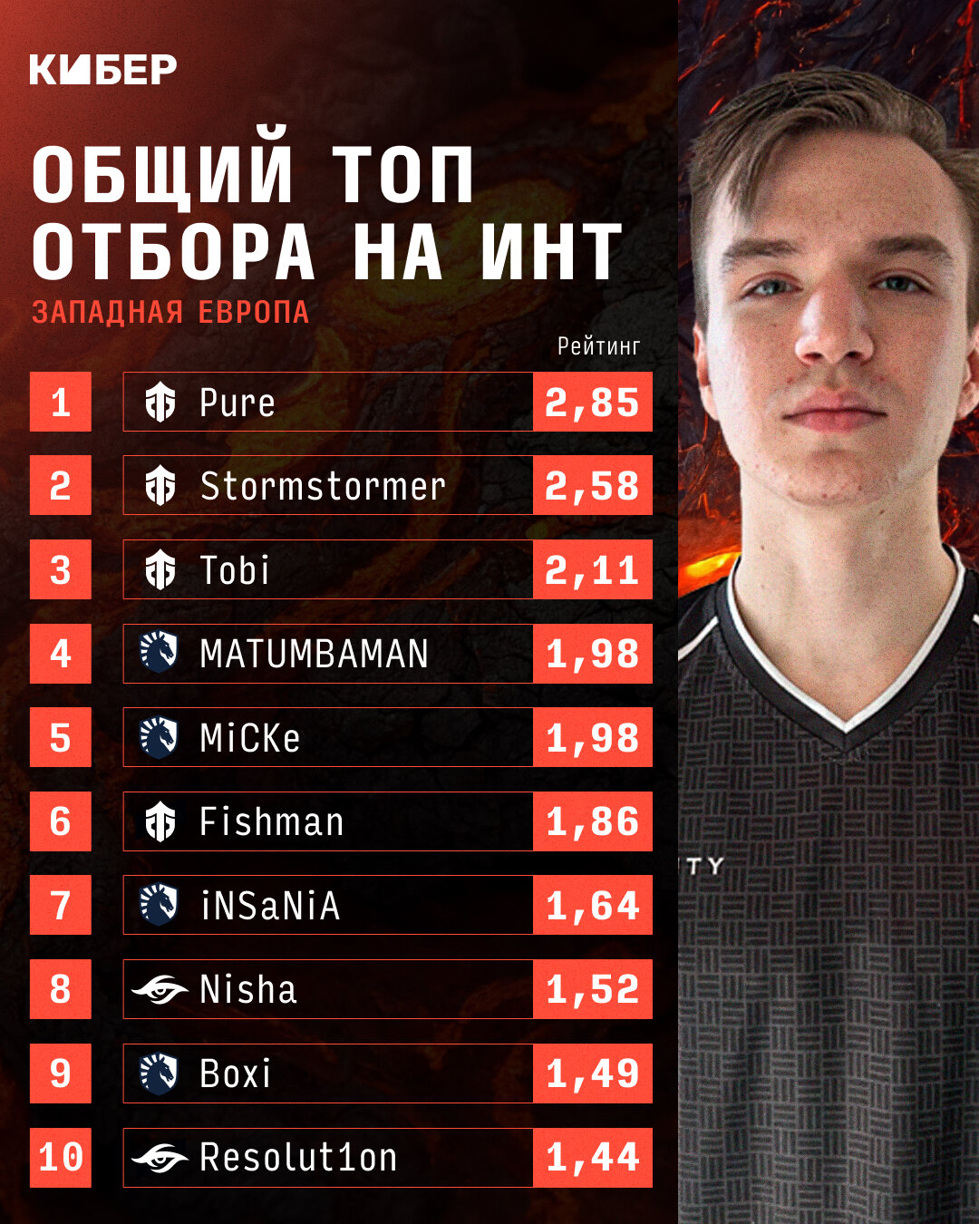 • Pure – лучший игрок отбора на TI11 в Западной Европе по рейтингу Кибера. Stormstormer на втором месте, Fishman – лучшая «пятерка»