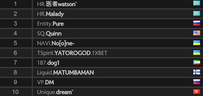 Первые два места ладдера заняли игроки HellRaisers: Алимжан «watson» Исламбеков и Арман «Malady» Оразбаев.