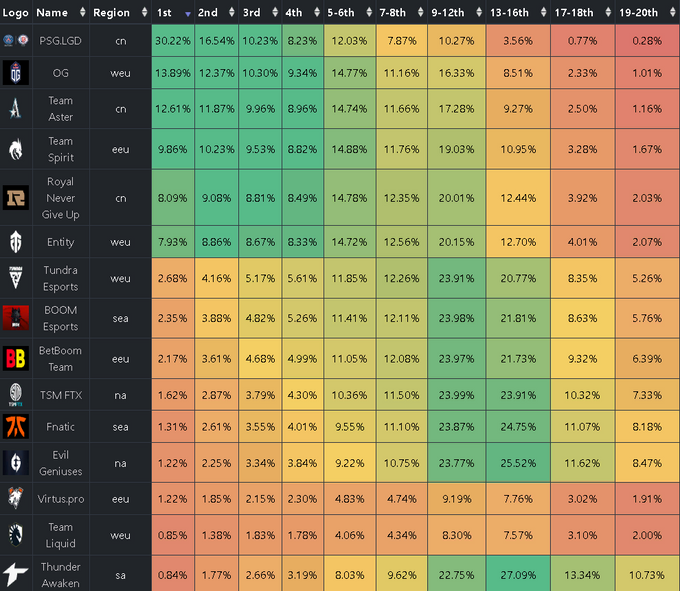 Бен «Noxville» Стеенхойзен подсчитал шансы команд на победу на The International 2022. Учитывались только те коллективы, которые уже прошли в групповой этап.
