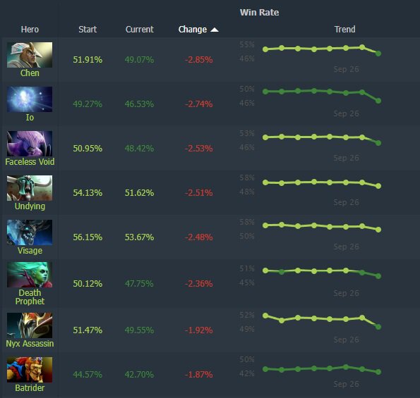 Потеряли в победах больше остальных Chen (-2,85%), Io (-2,74%) и Faceless Void (-2,53%).
