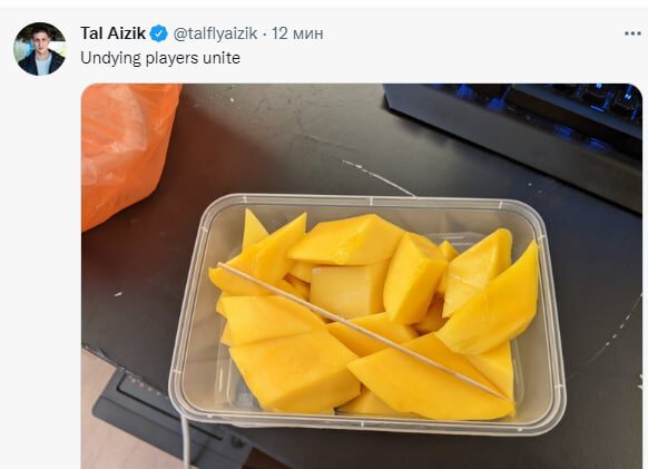 «Игроки на Undying, объединяйтесь», – подписал фотографию с нарезанным манго капитан Evil Geniuses Таль «Fly» Айзик.