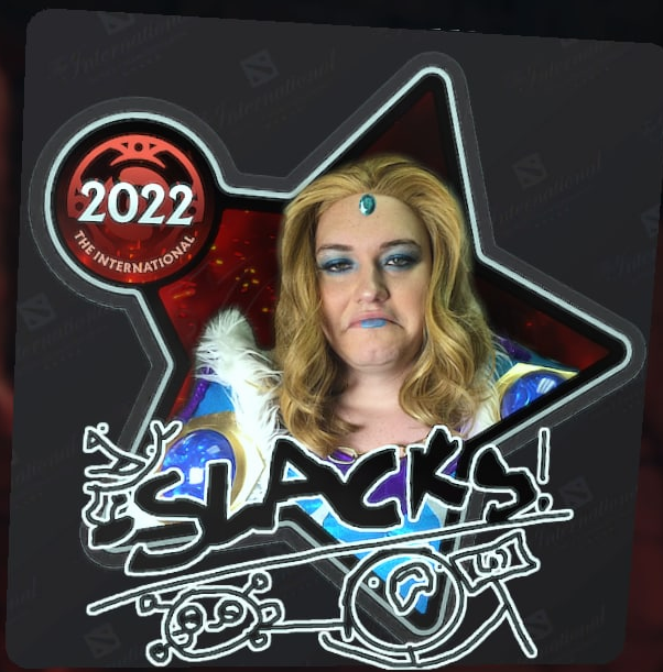 SirActionSlacks использовал фото в костюме ЦМки для наклейки TI11.