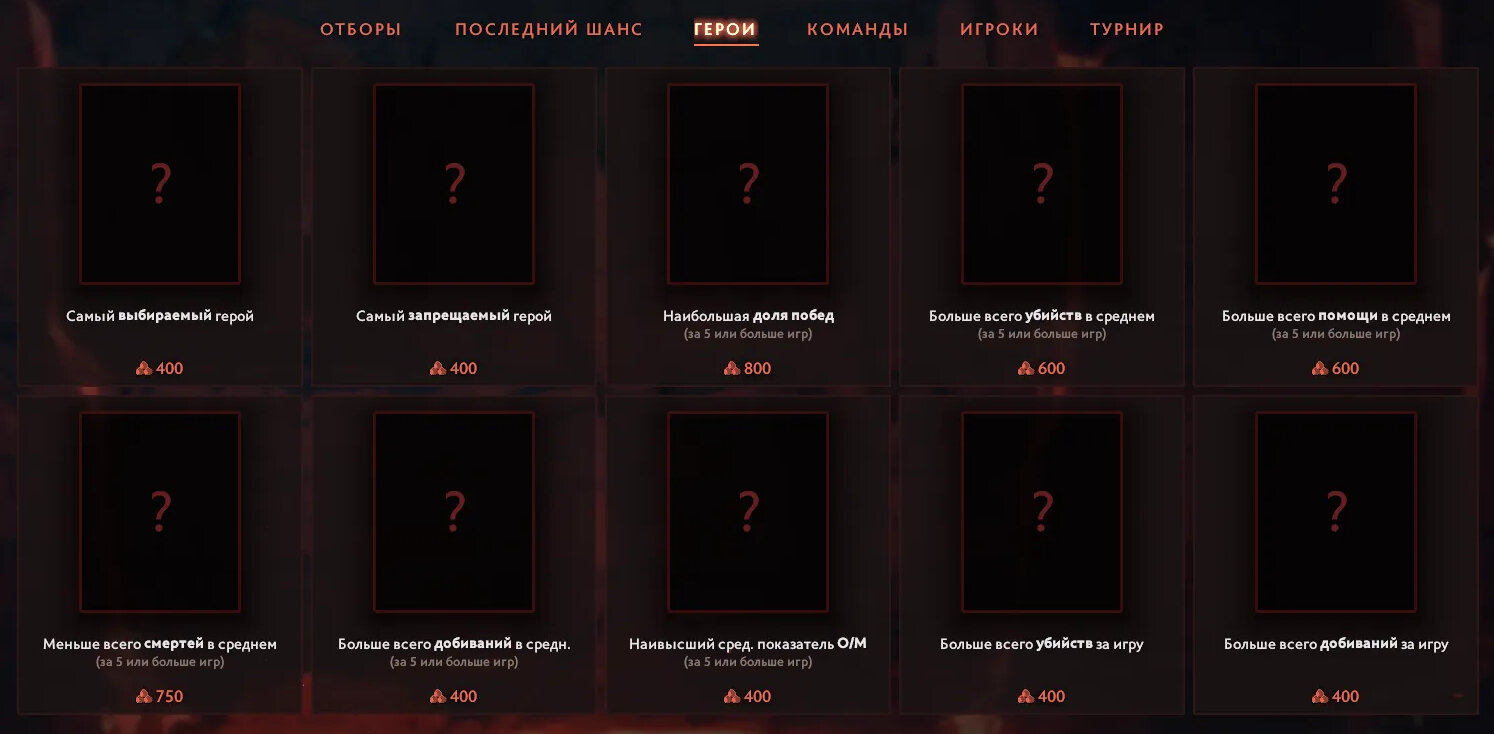 Игроки могут предсказать исход в категориях «Герои», «Команды», «Игроки», «Турнир». За верный прогноз можно получить от 200 до 800 боевых очков.