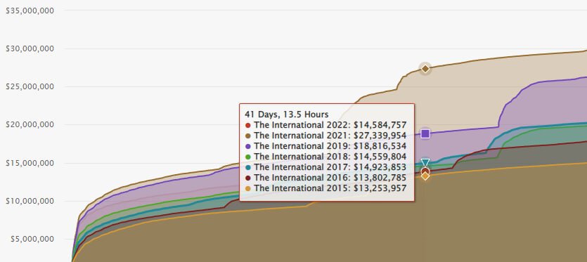 Отставание от призового фонда прошлогоднего The International составляет $13 млн.