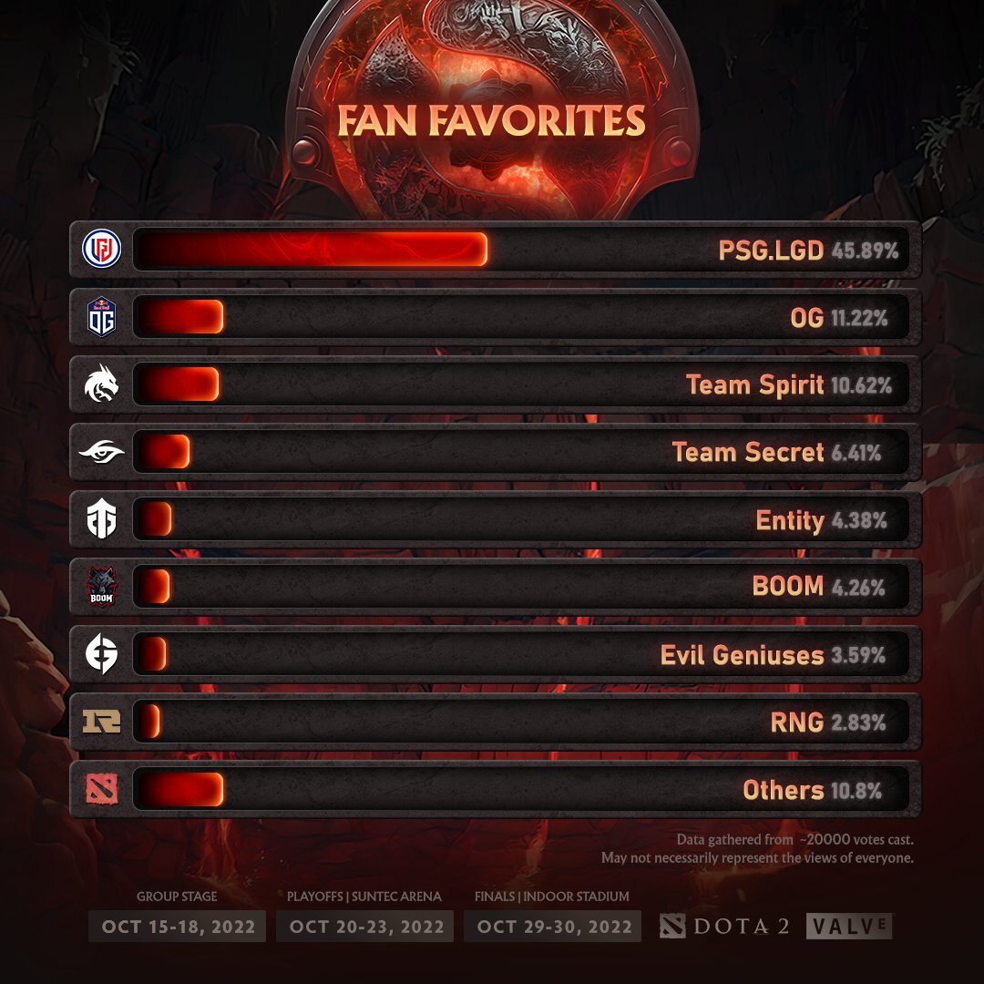 PSG.LGD – фаворит The International 2022 по мнению болельщиков, OG и Spirit – в топ-3
