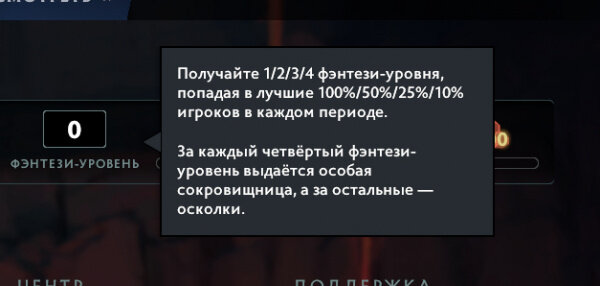 Ранее в описании было указано, что за фентези-лигу игроки будут получать сокровищницу за каждый четвертый уровень. Сейчас в подсказке говорится только об осколках Боевого пропуска.