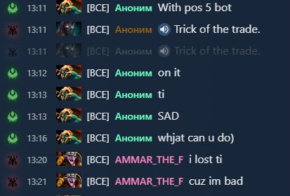 Оппонент: «Чувак, порадуйся, что выиграл [паблик] против трех недолюдей на корах. [...] C ботом на пятерке на TI – грустно. Что ты мог сделать)».