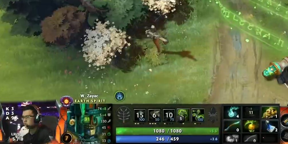 Киберспортсмен приобрел 2 стика на Earth Spirit на решающей карте матча против Tundra.