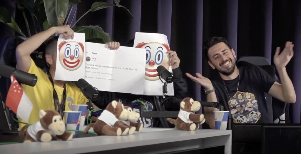 Во время подкаста по итогам TI11 Йохан «n0tail» Сундштайн и Себастьян «Ceb» Дебс примерили листы с эмодзи клоуна. Между ними распечатка твита Себа от 18 февраля 2022 года: «Этот кик запомнится как один из худших в истории Доты».