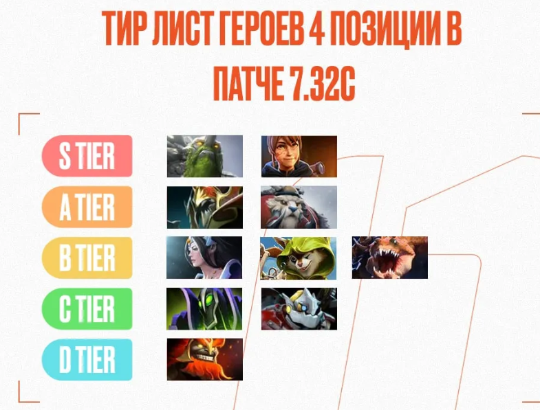 Тир-лист подготовил саппорт One Move Олег «Sayuw» Каленбет. Чем выше герой в тир-листе, тем он сильнее.