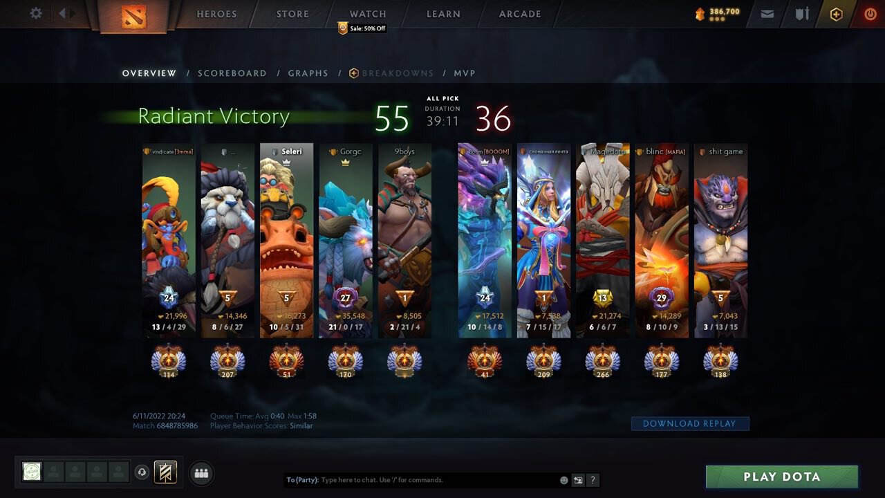 И все же игра EZ, потому что у меня был мой любимый керри Gorgc – 10/10, сыграл бы еще раз», – подписал скриншот саппорт Gladiators Мельхиор «Seleri» Хилленкамп.