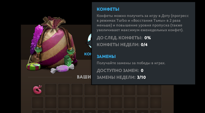 Теперь в Лавке конфет отображается еженедельный прогресс получения конфет