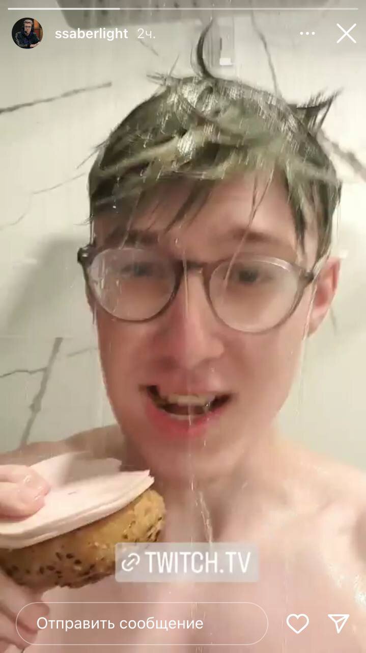 Saberlight анонсировал стрим, поедая сэндвич в душе
