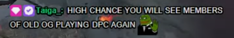 «Высок шанс того, что вы снова увидите старых игроков OG в DPC», – написал Томми «Taiga» Ли в чате твича Койквы.