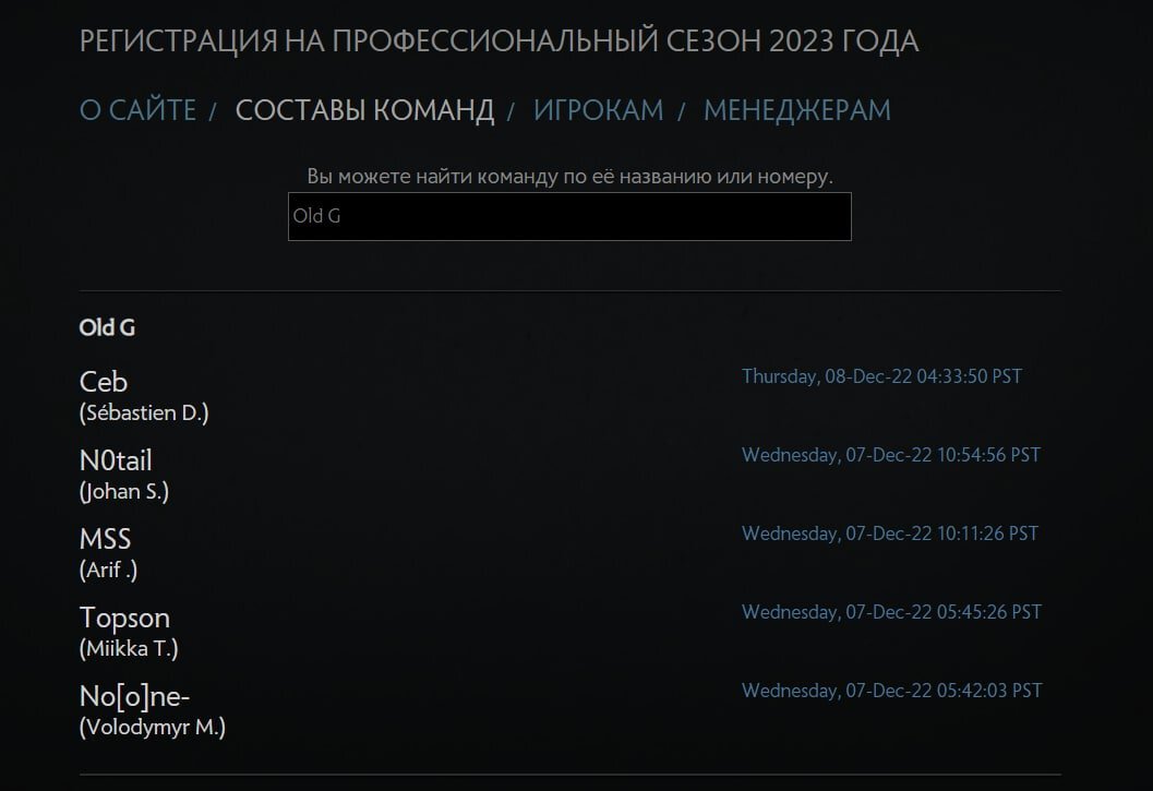 Команда Old G в полном составе зарегистрировалась на предстоящий DPC-сезон.